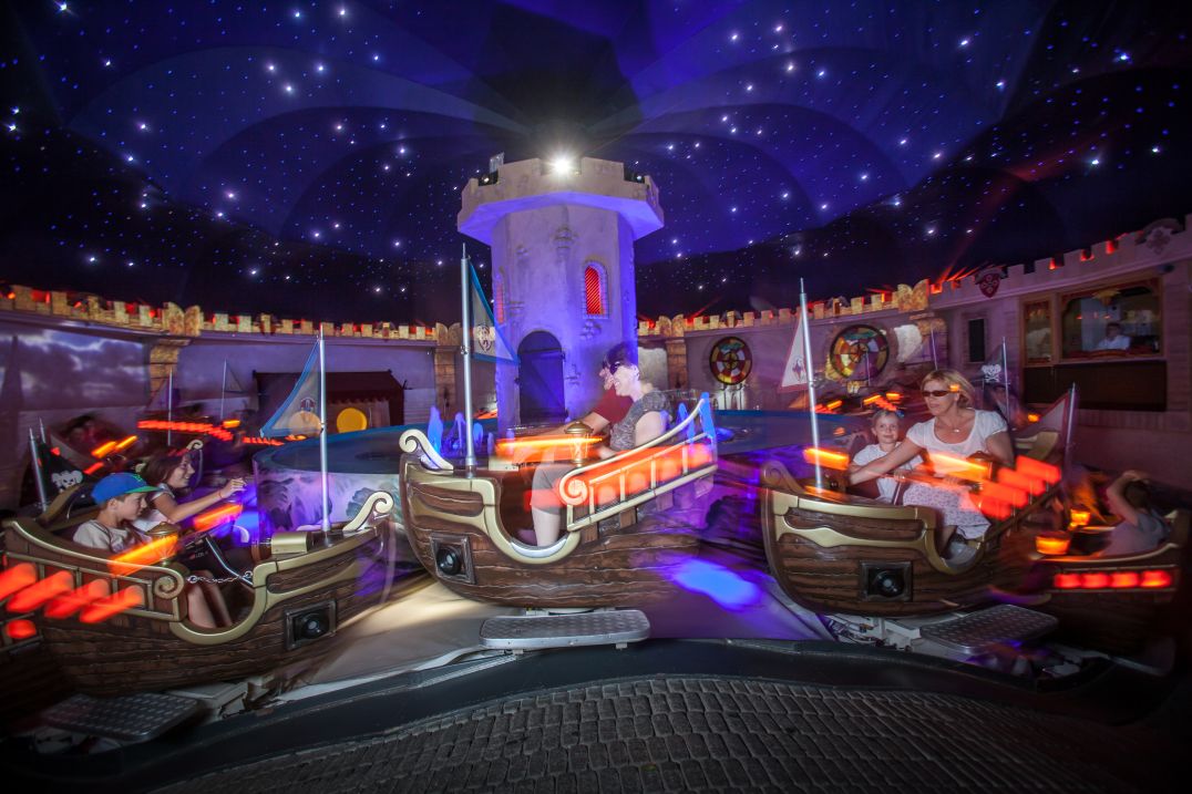 Die Seesturmbahn bringt die Energie einer lebendigen Meereswelle eindrucksvoll zum Leben und bietet ein Fahrerlebnis, das in ihrer Klasse herausragt. Während die Boote rund um den zentralen Hub kreisen, heben und senken sich die Gondeln rhythmisch und erzeugen so ein spielerisches Wellenmuster, das gleichzeitig sanft und mitreißend wirkt.